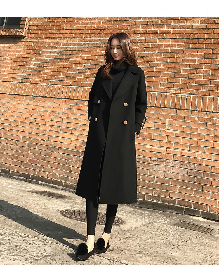 エレガントでオシャレなダブルブレストデザインが魅力のロングアウター◎ 骨格ストレートさんの体型を美しく引き立てる設計がされていて、着痩せ効果とスタイルアップ効果抜群で、上品で引き締まった大人な印象を演出してくれます。前のボタンは開けても閉じてもスマートに決まります♪ モデルのように全身ブラックで揃えるのもおすすめです!
