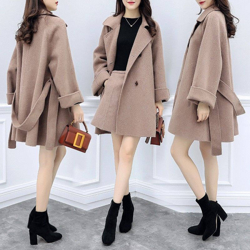【骨格ストレート】ミニスカート付きミドル丈コート