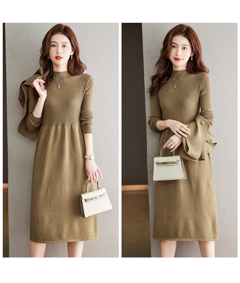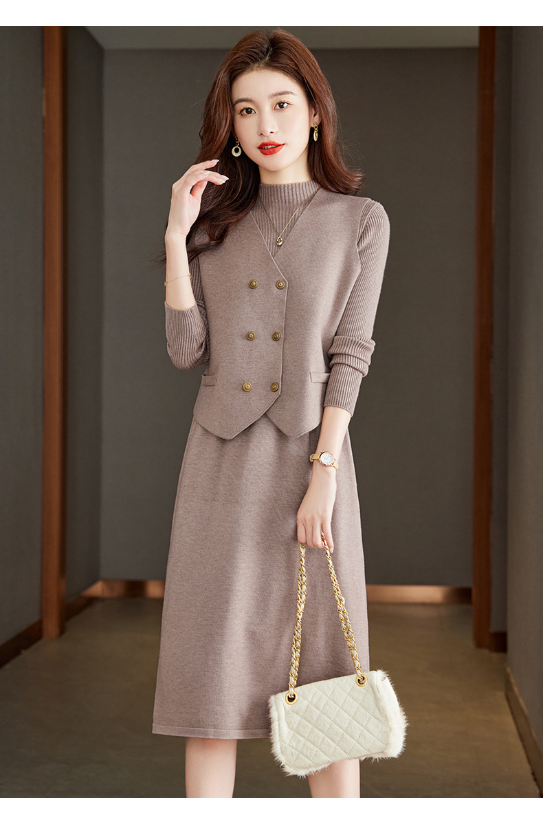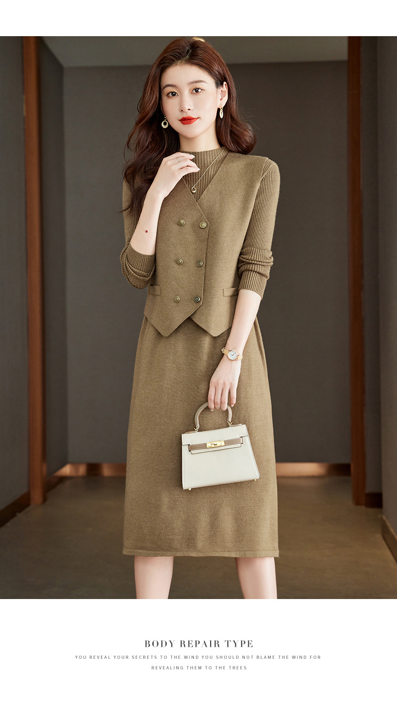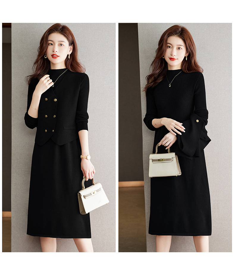 【骨格ストレート】ベスト付きIラインシルエットニットワンピース