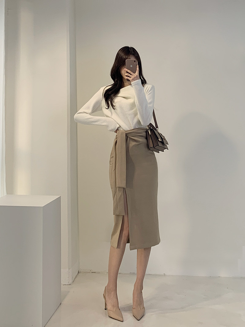 他ブランドでは見ないアシンメトリーデザインが魅力のユニークニットトップス。骨格ストレートさんをスタイル良く魅せるような計算され尽くしたデザインでかつユニークで他の人と被らないデザインなのが大好評◎ タイトスカートからパンツスタイルまで幅広いボトムスと合わせやすいのもポイント。ベージュとホワイトが今一番人気です♪