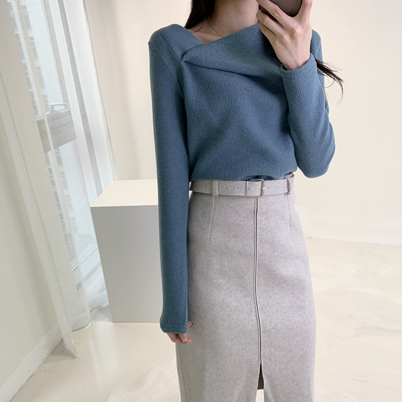 【骨格ストレート】アシンメトリーユニークニットトップス