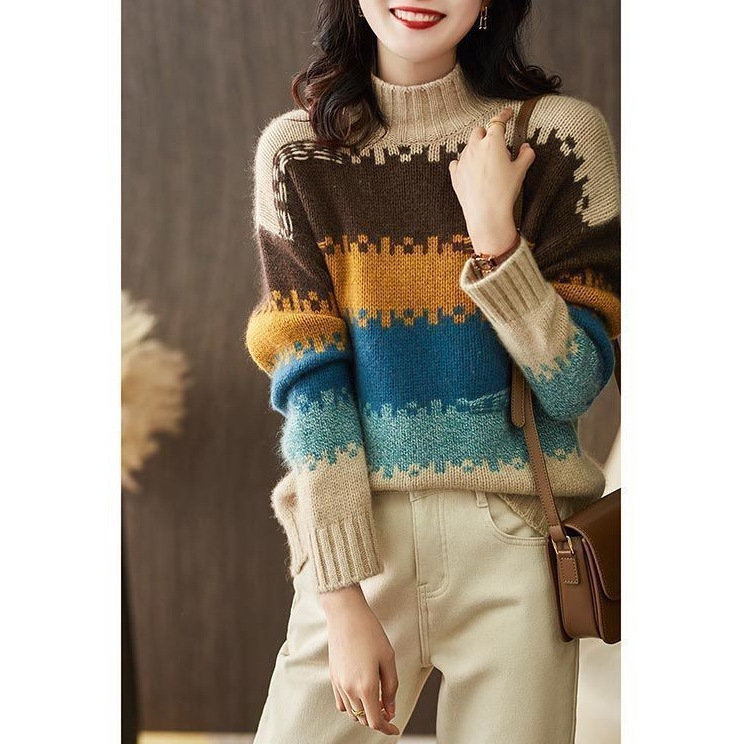 【骨格ストレート】ハイネックマルチカラーニットトップス