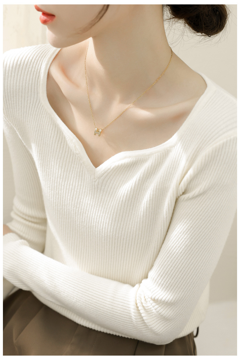 スクエアボトルネックとVネックを組み合わせたようなキーネックニットトップス。デコルテラインを美しく魅せるまさに骨格ストレートさんにぴったりのデザインになっています◎ ボディラインにフィットする素材、サイズ感となっているので着痩せとスタイルアップ効果も抜群。洗濯しても縮みにくいのも地味に嬉しいおすすめポイント♪