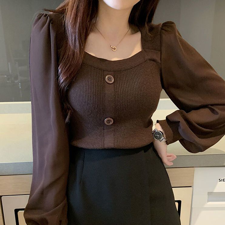 【骨格ストレート】スクエアネックニットトップス