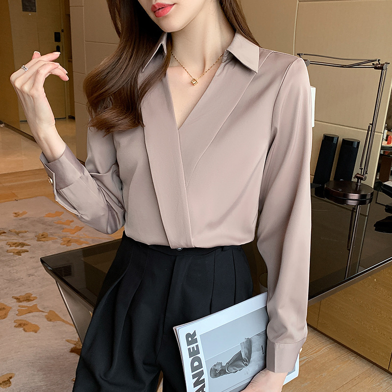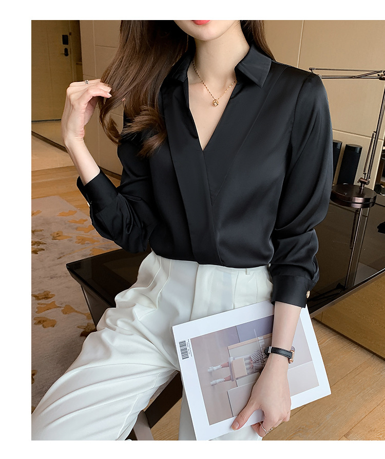 骨格ストレートさんが着痩せ&スタイルアップするVネックデザインのカラーシャツ。美シルエットでメリハリボディを演出するだけでなく、艶やかで上品な素材を使用していて大人で上品な印象を与えます◎カジュアルからフォーマル、オフィスコーデからデートコーデまでどんなシーンにも似合うので大人女性は1着持っておきたいアイテムです♪
